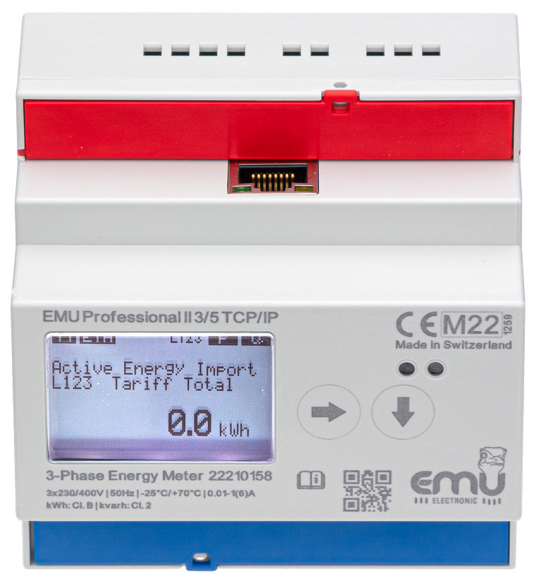 Der EMU Professional II 3/5 TCP/IP ist ein 3-phasen MID Energiezähler und verfügt über eine integrierte TCP/IP Schnittstelle.