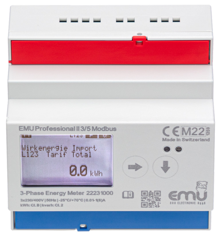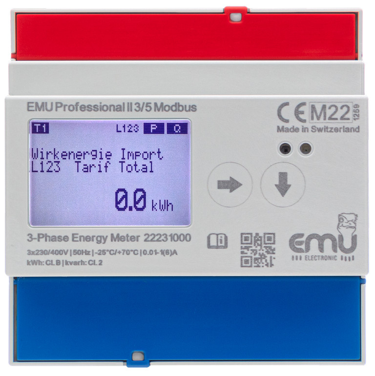 Der EMU Professional II 3/5 Modbus ist ein 3-phasen Energiezähler mit RS485 Modbus RTU Schnittstelle. Die Energiemessung erfolgt via Stromwanlder /5 und /1A. Der Energiezähler verfügt über eine MID B+D Zulassung und kann für die Energiekostenabrechnung verwendet werden.
