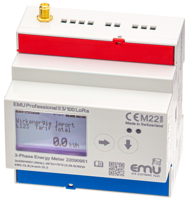 Der EMU Professional II 3/100 LoRa ist ein 3-phasen Stromzähler mit MID Zulassung und LoRa Funk Schnittstelle.