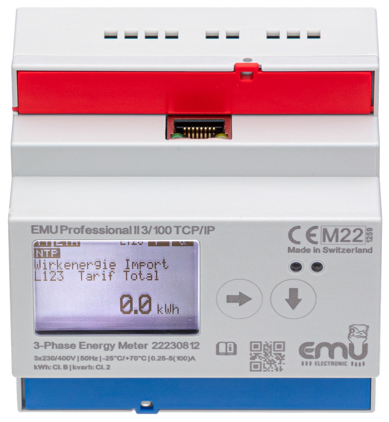 Notre compteur d'énergie bidirectionnel triphasé EMU Professional II 3/100 TCP/IP est une solution avancée et fiable pour la gestion et la surveillance de l'énergie industrielle et commerciale. Il est conçu pour une connexion directe jusqu'à 100A et est équipé d'une interface TCP/IP, ce qui facilite la surveillance et la gestion à distance de la consommation d'énergie par le biais d'une connexion réseau.