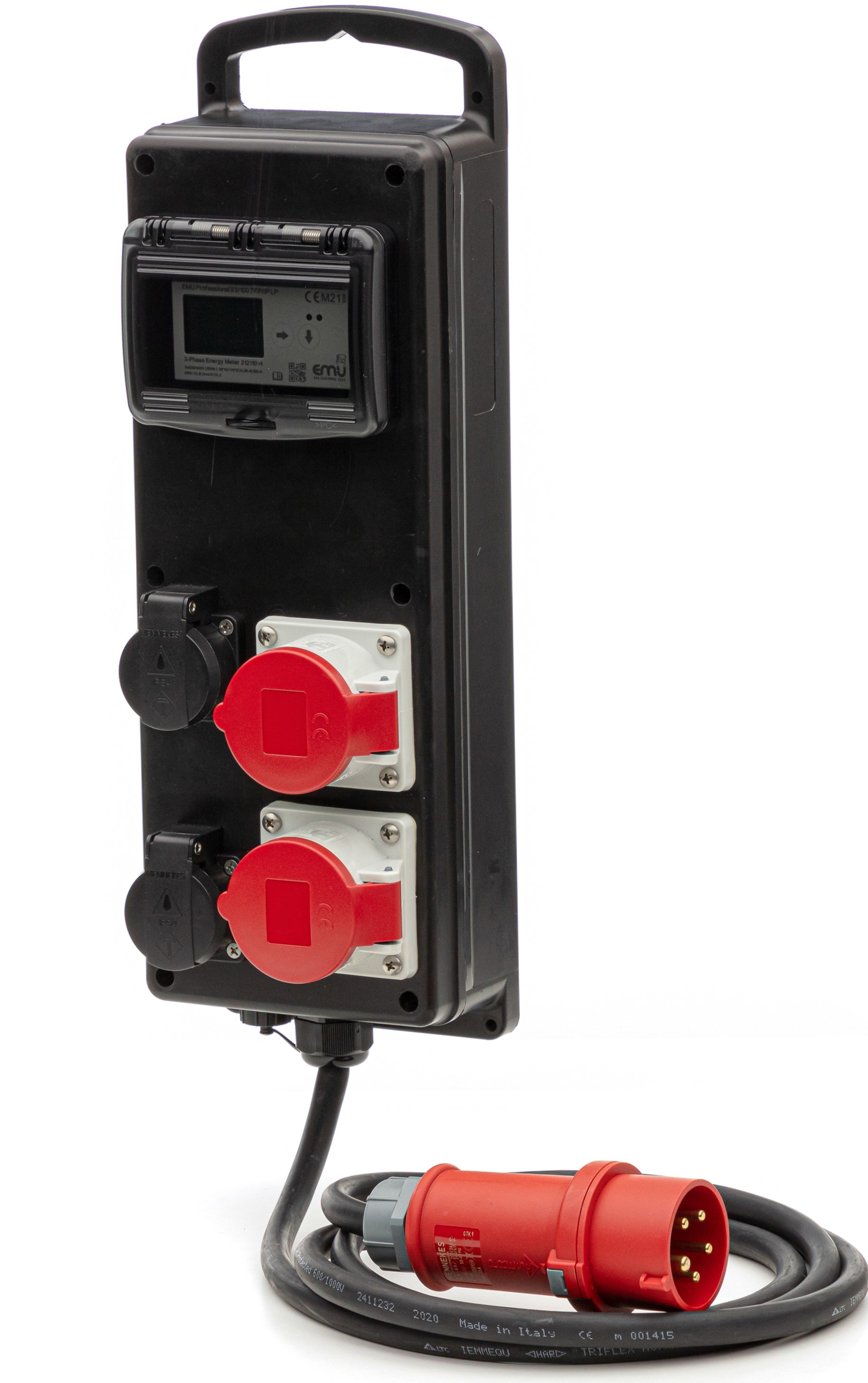Vollgummi-Steckdosenleiste mit integriertem Stromzähler und 2 CEE-Einbausteckdosen 16A/400V~5p