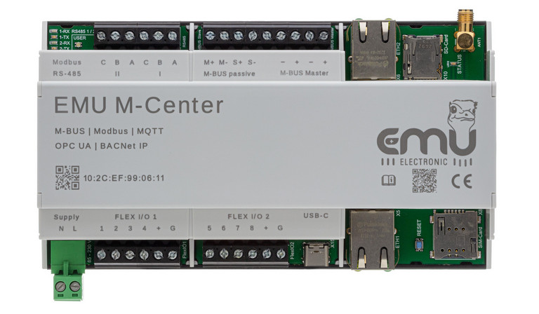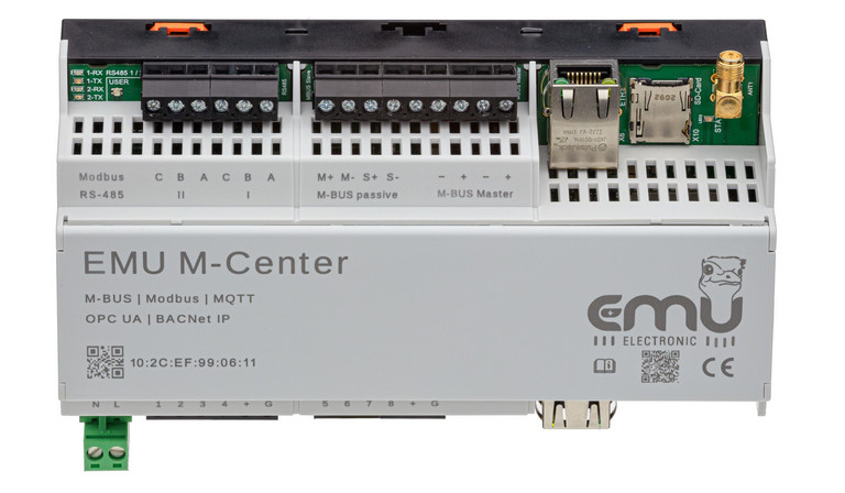 Das M-Center mit bietet eine einfache Lösung, um Messwerte von 20 bis 250 M-Bus und sowie max. 64 Modbus Messgeräten zu loggen. Er ist vielseitig einsetzbar und ermöglicht es, die Messwerte aus verschiedenen Quellen (M-Bus, RS485 und Modbus TCP) zu erfassen. Mit der einfachen Bedienung und der robusten Bauweise ist der Datenlogger ideal für den Einsatz in industriellen Umgebungen. Er ist mit verschiedenen Schnittstellen (z.B. BACnet IP, MQTT) ausgestattet.